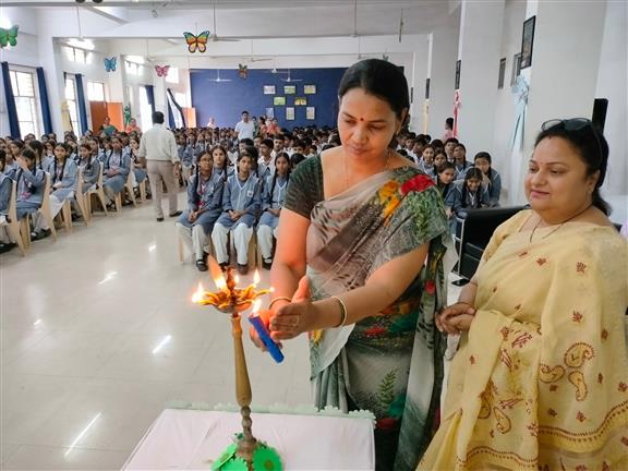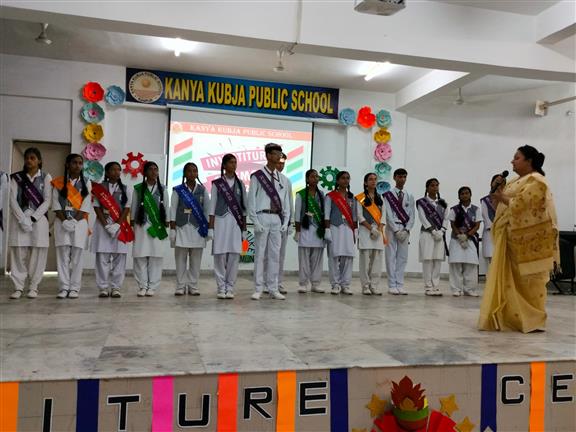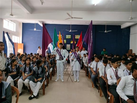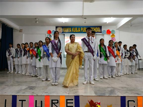 Description : On 14th July 2025, the Investiture Ceremony for the newly elected Cabinet Members of our school was held with great enthusiasm and pride. The event commenced with the lighting of the ceremonial lamp, followed by a soulful Saraswati Vandana dance performance by our junior students.