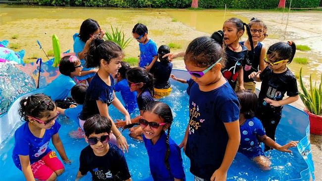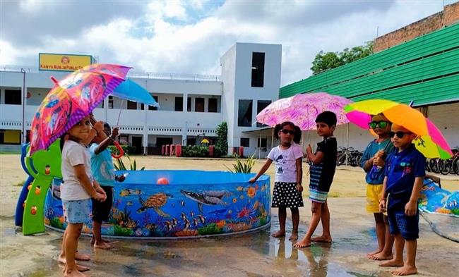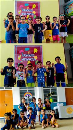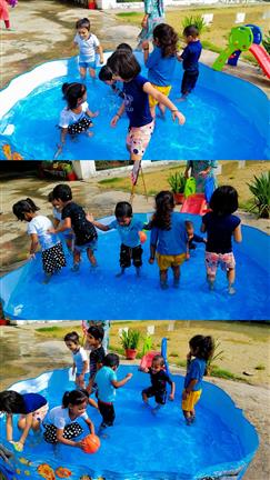 Description : Today, on 28th July 2025, a vibrant Summer Carnival and Pool Party was organized at our school for the tiny tots of the Primary Wing. The little ones had a joyful time splashing and playing in the pool, making the most of the refreshing pool bath in the summer heat. To add to their delight, special stalls serving bananas and chirpy chips were also set up, offering them tasty treats.