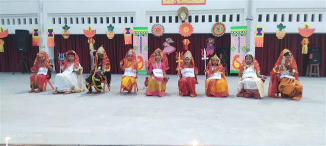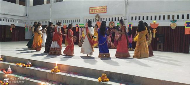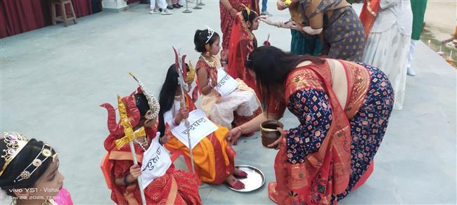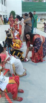 Description : आज विद्यालय में नवरात्रि उत्सव बड़े धूमधाम से मनाया गया, जिसमें मुख्य अतिथि के रूप में श्री धीरज मेहरोत्रा जी एवं श्रीमती योग्यता मेहरोत्रा जी और डॉक्टर नंदिनी उपाध्याय जी उपस्थित रहे। हमारी प्रधानाचार्या जी ने सभी अतिथियों के साथ मिलकर नौ देवियों का पूजन कर कार्यक्रम का शुभारंभ किया, तत्पश्चात विभिन्न रंगारंग कार्यक्रमों की प्रस्तुतियां हुई जिसमें काली मां के नृत्य ने सबको झकझोर के रख दिया। तदोपरांत डांडिया एवं गरबा रास हुए जिसमें अभिभावकों के बीच भी डांडिया रास संपन्न कराया गया तथा वेशभूषा और बेहतर नृत्य पर उपहार भेंट किए गए ।